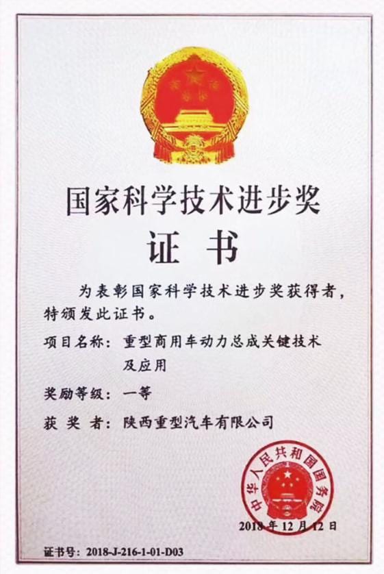 Shaanxi Automobile Group recieved the National Customer Technology Advancement Award along with Weichai power, FAST transmission and Hande Axle Post time: Jan-08-2019