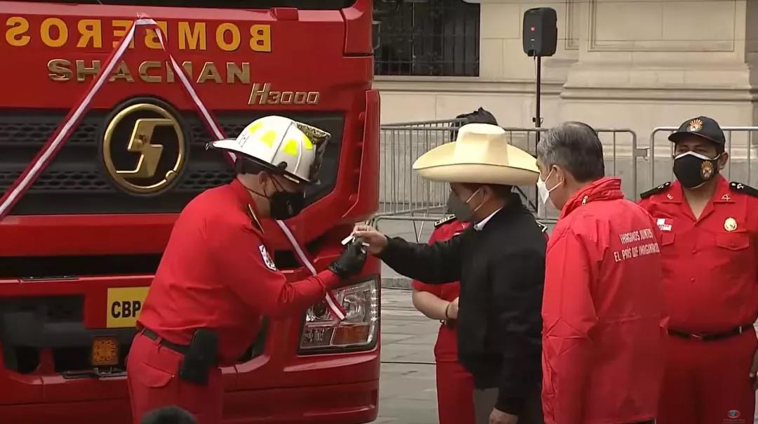 At the event, Peruvian President Pedro Castillo personally handed over the vehicle key to the commander in chief of the volunteer firefighters.