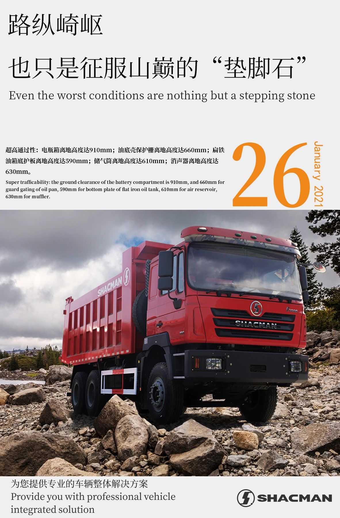 Even the worst conditions are nothing but a stepping stone. SHACMAN F3000 dump truck Post time: Jan-26-2021