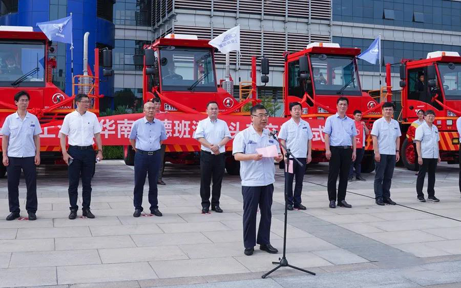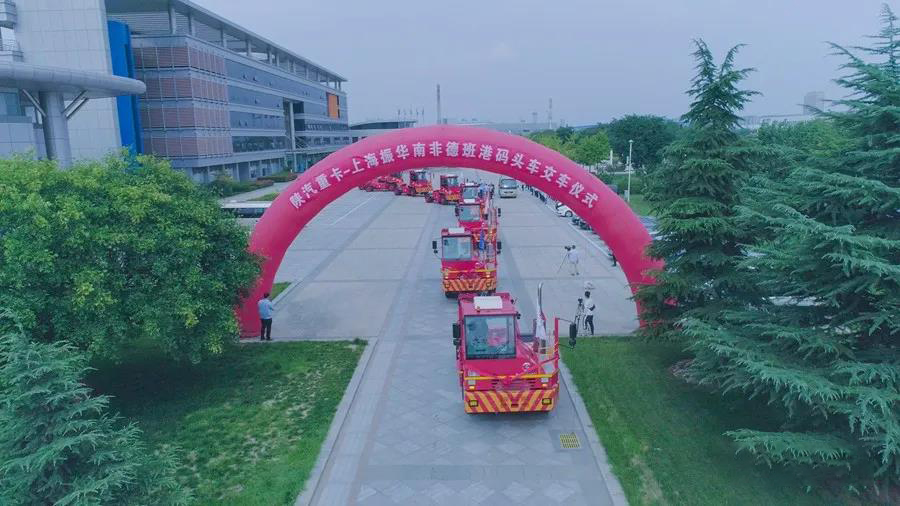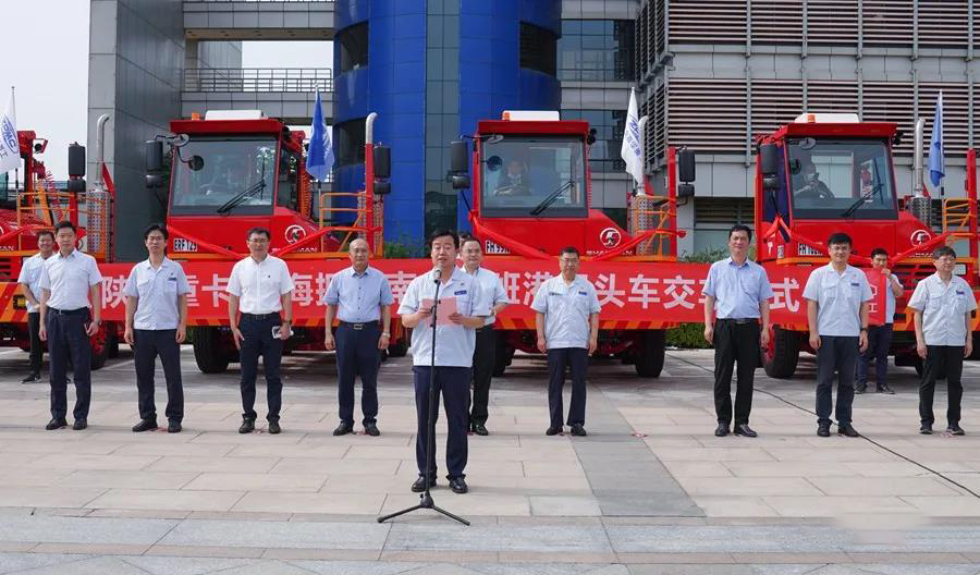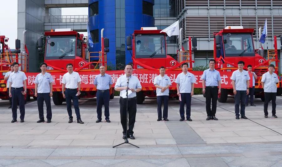 On July 3, SHACMAN-Shanghai Zhenhua DurbanPort, South Africa vehicle delivery ceremony and the MiddleEast regional distribution authorization ceremony were held in Shaanxi Automobile Xi’an Commercial Vehicle Industrial Park. Yuan Hongming, secretary of the party committee and chairman of Shaanxi Automobile Holding Group Co., Ltd,and Huang Qingfeng, deputy secretary of the party committee and president of Shanghai Zhenhua Heavy Industries Group Co., Ltd.,gave speeches on the spot. Wang Yanhong, deputy secretary and general manager of Shaanxi Automobile Holding Group Co., Ltd Party Committee, chair the event.