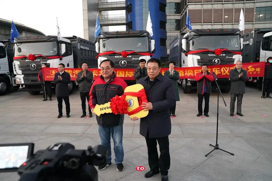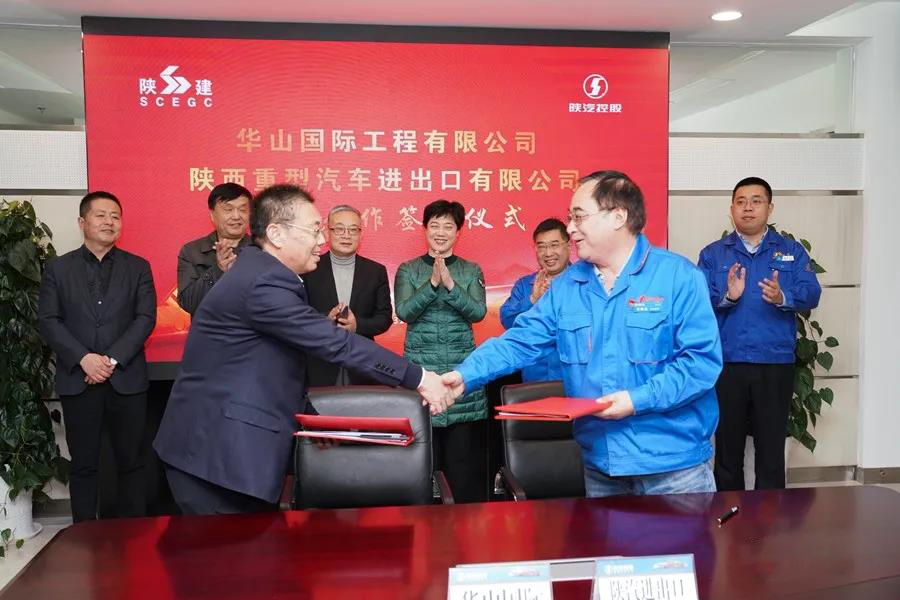 With the words of delivery by Zhao Jing, Secretary and director of Department of Commerce of Shaanxi Province, the first fleet of SHACMAN trucks departed from Shaanxi Automobile Commercial Vehicle Industrial Park to Ghana E-E highway project. On 2020.12.31, SHACMAN signed a strategic alliance with Huashan international.